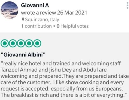 Tanzeel (F&B Service – Batch 1) gets appreciation from their customer from Italy. (Mar 2021)