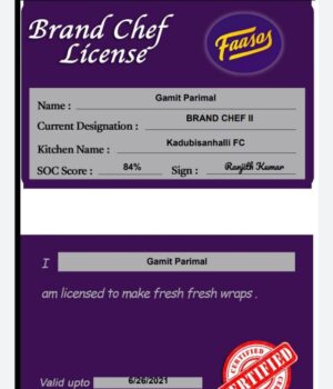 Parimal (F&B Service – Batch 6) gets certified as Brand Chef II at Rebel Foods. (Mar 2021)